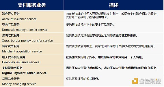 2020 年 1 月修订后生效的《支付服务法》(Payment Services Act,PSA)负责监管规范新加坡支付服务业务,包括传统的支付业务,如开户服务、汇款服务、货币兑换服务等,也包括了新兴的支付业务,如电子货币(eMoney)发行服务和支付型代币(Digital Payment Token, DPT)服务。