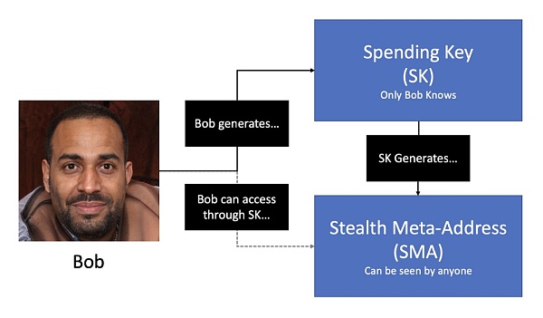 隐身地址必须由两个参与者参与生成:在下面的例子中Bob是接收方,Alice是发送方。