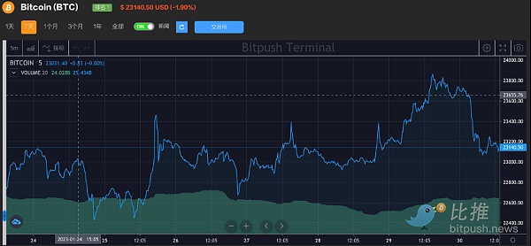 TradingView数据显示,BTC/USD 隔夜在 Bitstamp 上短暂触及 24,498 美元。虽然短暂,但此举标志着该货币对最近几天第三次尝试将价格提高到 23,400 美元以上。在撰写本文时,比特币的交易价格为 23,250 美元。