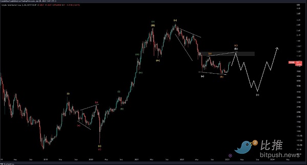 Crypto Tony 还预计山寨币将走高,整个加密货币市值将重新测试 1 万亿美元大关上方的阻力位。Crypto Tony在1月28日在推文中写到“我仍在寻找未来几周的大幅上涨,但在开始触及 1.2 至 1.33 万亿美元的市值阻力位时要谨慎。我预计这里会有强大的阻力。”