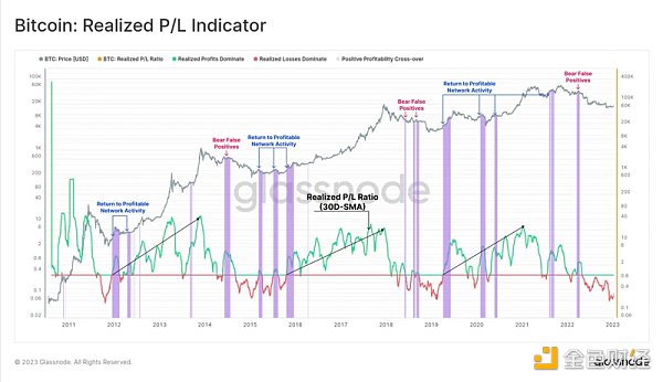 指标:已实现利润比(P/L)的 30D-SMA 恢复到 1.0 以上,这表明,持有未实现亏损的投资者正变得疲软,新一波需求能够吸收所获得的利润。
