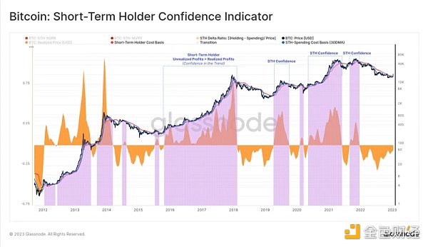指标:当支出实体的成本基础高于持有实体时,我们可以得出结论,大多数新投资者倾向于持有,因此对持续上涨更有信心。