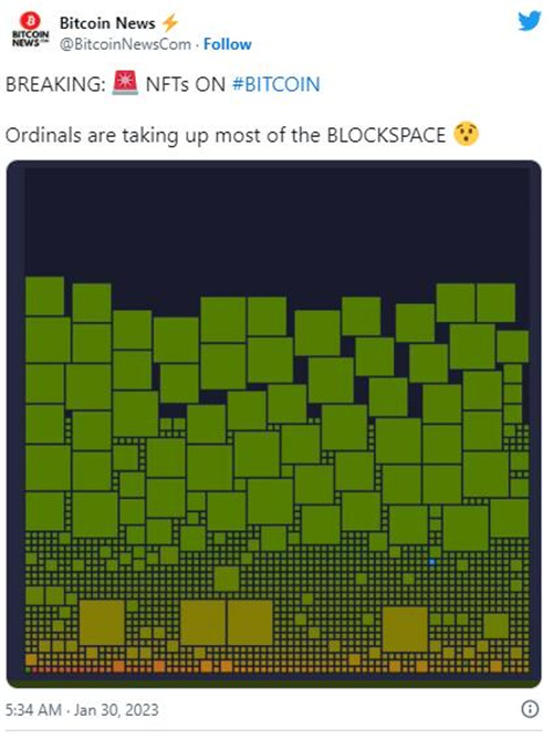 一些人指出,这些类似 NFT 的结构已经占用了比特币网络上的区块空间,这可能会推高交易费用。