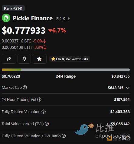 泡菜的市值是 64.3 万美元,FDV 是 240 万美元。