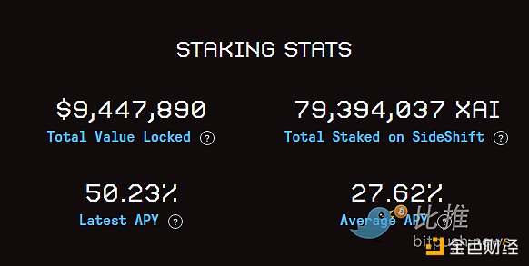 在押注 XAI 时,你可以从 Sideshift 的每日交易费中获得 50% 的分成,目前的年利率为 50%.