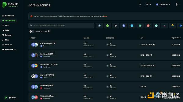 尽管这样,你仍然可以使用 pickle Jars(金库)来获得很好的 APY,用 pickle 的股份来投票决定哪个金库获得奖励并获得费用份额,目前奖励的 APY 为 19%,对于一个使用量低的小盘股来说,这是相当了不起的。