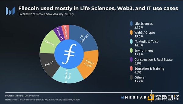 按行业用例对活跃存储交易进行细分,揭示了最多利用 Filecoin 的行业: