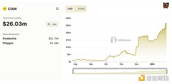 另一个就是目前专注于做 LSD 相关自动化策略的cian.app了,该项目倒是基本明牌空投,经常整活发各种 NFT,AMA 也说过 23年会发币,看 TVL 数据的话增长也不错。