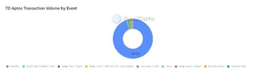 Aptos 区块链于2022 年 10 月推出,目前仍处于生态系统发展的初级阶段。区块链上的去中心化金融或非同质代币项目很少,智能合约活动目前有限。超过 94% 的区块链交易用于 APT 传输,表明去中心化应用程序活动可以忽略不计。