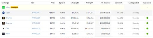 APT 的大量购买兴趣来自 UpBit 加密货币交易所的韩元交易对。该交易所占 Aptos 交易量的近 40%。APT 在 Upbit 上的交易价格比市场价格高出约 1%–3%,这表明该地区的需求很高——因此,泡菜溢价相同。