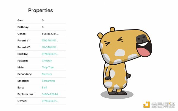 attributes属性存储了育种期间产生的人类可读的属性。例如,{ “name": "pattern", "value": "panda" }。