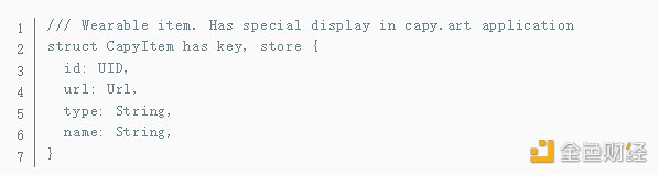 这个非常简单的模块定义了可以添加到每个Capy的可穿戴物品,以及我们如何实现前端显示。项目只能由Capy管理员添加,因为它需要有CapyManagerCap的授权。