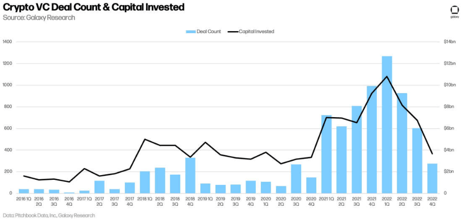 根据研究公司pitchBook的数据显示,加密市场初创公司正处于吸引投资的艰难时期,而在2022年第四季度,该行业风险投资已跌至近两年来的最低水平,比2021年同期下降了75%。