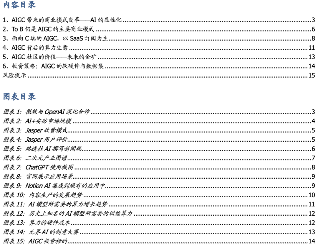 我们在此前的深度报告《AIGC:Web3时代的生产力工具》中讨论了AIGC的技术变革以及应用场景,随着产品落地及场景的拓展,越来越多的市场关注将集中于商业模式的探讨,即一个很关键的问题:AIGC如何赚钱?通过行业访谈,我们认为2023年将是AIGC的商业化加速之年,AIGC有望走近大众的生活、工作中。