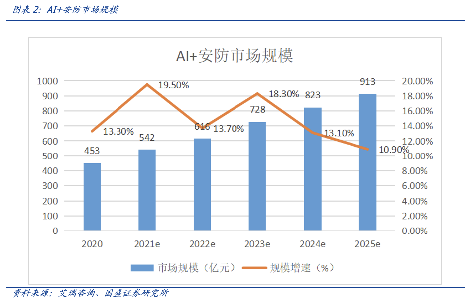 在此之前,我们关注到的AI主要集中于安防、网络监测等领域。2020年,AI 安防领域达到了453亿的市场规模,是商业落地速度最快且容量最大的赛道之一。预计这一规模将在2025年达到900亿。但这一领域,基本都是同硬件和系统一起打包提供。
