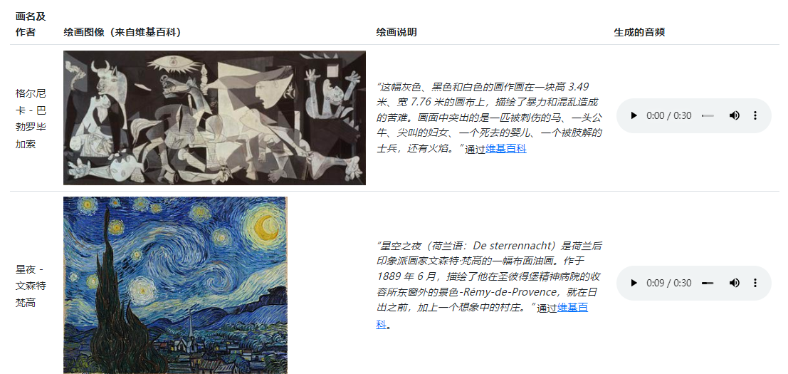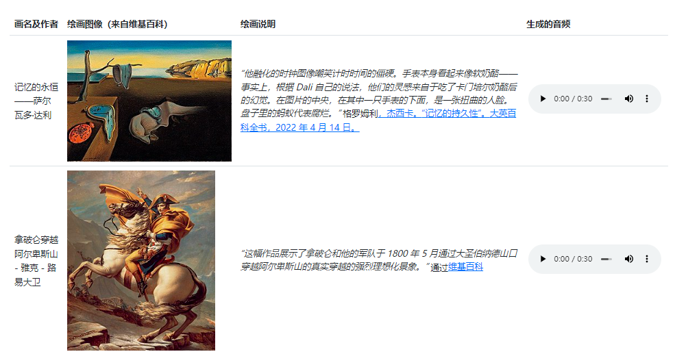 又如以世界名画《跨越阿尔卑斯山圣伯纳隘口的拿破仑》为“题”,MusicLM生成的音乐庄重典雅,将冬日的凌厉肃杀和英雄主义色彩体现地淋漓尽致。写实油画之外,《舞蹈》《呐喊》《格尔尼卡》《星空》等抽象派画作均可为题。