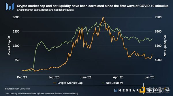 自全球金融危机以来,美联储资产负债表流量已成为美元流动性的最重要组成部分。当美联储通过购买资产(国债和抵押贷款支持证券)向市场注入大量流动性资金,这被称为量化宽松 (QE);另一方面,量化紧缩 (QT) 是美联储出售其部分资产(同样是美国国债和抵押贷款支持证券)。