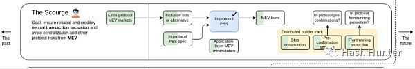 从整体的技术架构和链路上来看,现有的pbs架构设计并不简洁。Pbs本身也是以太坊在the scourge阶段之前的过渡。而对于中继层和构建层之间的勾结和区块构建者的中心化目前也没有完全解决的方法。这也是flashbots 在之后推出suave的一个主要原因。