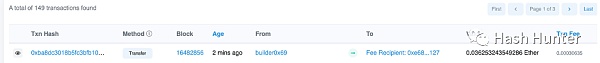 在这个区块的最后一笔转账,构建者给了验证人一笔0.295569746890668 Ether的转账。