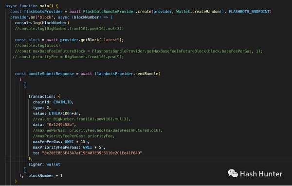 Flashbots 实际上是创立了一种全新的交易信息通道,他使得一些用户能够直接的和区块构建者进行通讯。例如下面的例子,我通过flashbots将上图mint的交易内容直接传递给区块构建者从而规避了我的mint信息提前被人知道。