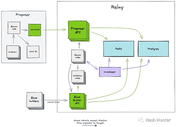 中继器(relay):区块构建者需要一个信任的第三方来将其发送的区块送到验证者手上而不被泄露,同样的验证者也需要一个信任的中继层来帮其确保区块的合法性。当然不同的中继器其特点和特点都有所不同,一个验证者借由mev-boost来接入多个中继器从而获得最多的区块选择权。
