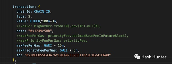如上图所示就是对一个nft合约进行mint所需要的信息,其中最重要的信息就是data,在上图data里面0x1249c58b就是对mint()这个function的调用。而如果我们把data里面的数据换成 0x那么就代表一个普通的转账。通过这些data和value的数据,我们可以清晰地判断用户这一笔交易的意图和作用。