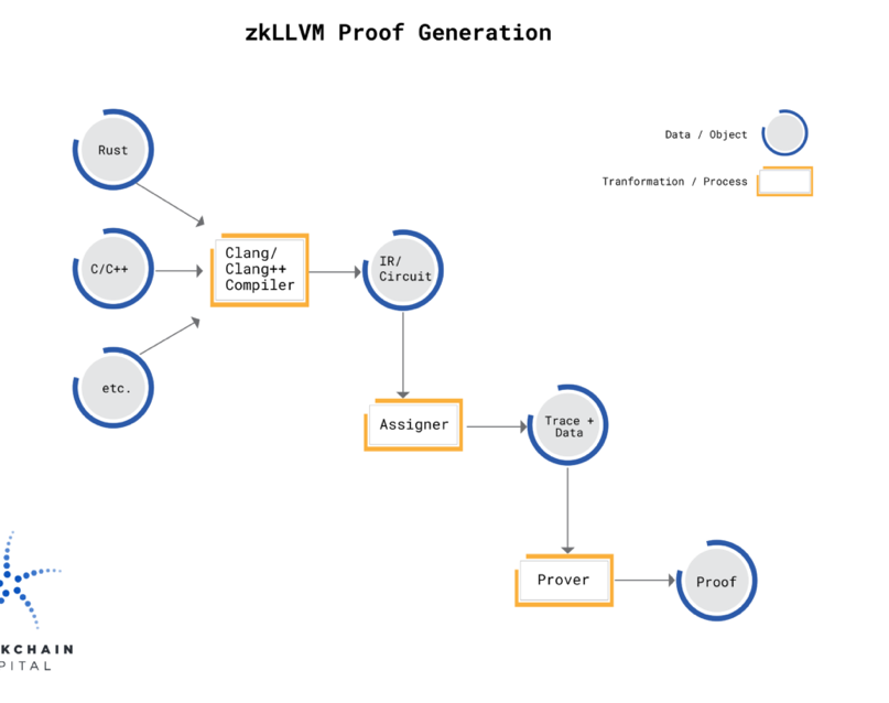 zkLLVM 被设计为现有 LLVM 基础设施的扩展,LLVM 基础设施是一个行业标准工具链,支持许多高级语言,如 Rust、C、C 等。