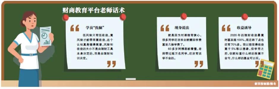 新京报记者调查发现,几元或者十几元课程仅是财商课套路的开始,其间,授课老师不断提及高收益,逐步引导学员升级课程,而价格也随即飙升至数千元。有学员告诉记者,花费2000元理财收益没见涨,被收了智商税。
