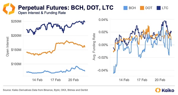 其次,在至少包含两个指数的代币列表中,有比特币、以太坊、比特币现金、莱特币和、Polkadot等总计10种代币。此外吗,永续期货市场看好这些代币可能再次流入亚洲市场,上周BCH、DOT、LTC三种代币的持期货仓量均增加了约 15%,利率也向正值移动,并且自宣布以来大部分时间都保持不变外。
