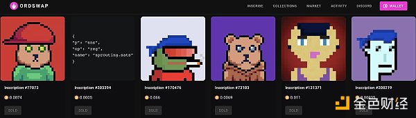 Ordswap 的整体 UI 和使用体验相对于以太坊生态现有的成熟 NFT 市场,并没有较大的差距,鉴于 BTC 网络数字艺术品当前的活跃度有限,以及 BTC 价格过高的情况,Ordswap 市场上当前的数字艺术品很少有成交价高于 0.1 BTC 的。