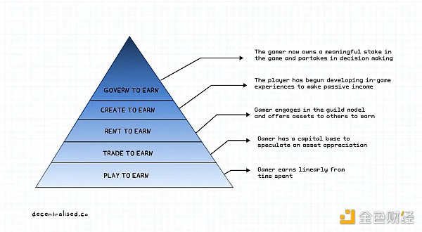 如果 UGC 在建立时注重游戏者的动机建设,那么它们很可能会更强大。Web3 原生游戏如果能在盈利方面得到补偿,那么它减少一些乐趣也无可厚非。我们在 P2E 经济中看到的大部分用户都是为了它所产生的额外收入而来。像这样的用户可能会有一个进化的弧线。随着时间的推移,用户将赚到足够的钱来购买游戏中的资产并进行交易。