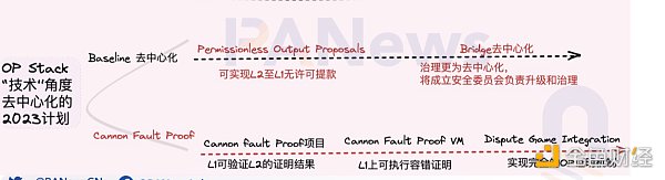 具体可以分为两部分,一部分是被称为“基线”(Baseline)的升级方案,另一部分是Cannon容错证明机制改进路线,两者并行以提升OPStack 的去中心化水平。