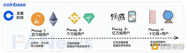 阶段二:交易所叙事(千万级用户量),交易所成为法币和加密货币互换的中心地带,投资和投机活动会完成人们对区块链网络的初步大规模用户教育;