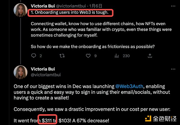 知名 Web3 游戏平台 Decentral Games 的用户增长负责人曾公开表示,因钱包连接等问题造成的单个用户的获客成本高达 311 美元。