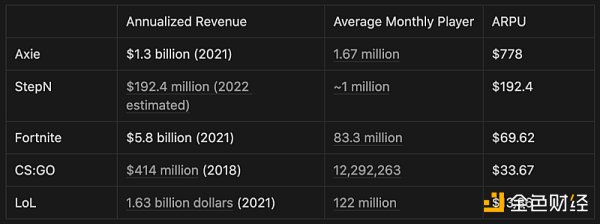 图 8:典型 Web3 游戏与传统游戏在收入和用户上的对比。数据来源:公开资料整理