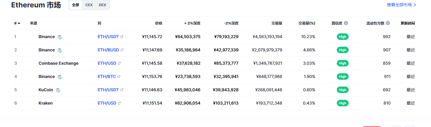 鉴于以太坊是仅次于比特币的第二大加密货币,因此可以购买以太坊,或在几乎所有主要加密货币交易所使用 ETH 交易对。一些最大的市场包括: