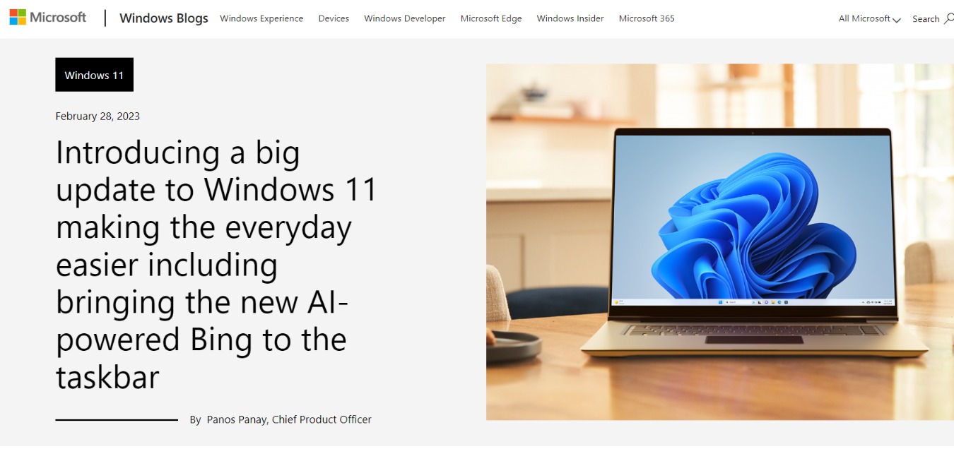 当地时间周二,微软首席产品官帕诺斯·帕奈发布更新公告称,在Windows最新推送的更新中,集成Open AI GPT功能的新必应将出现在电脑的搜索栏上,使用户更轻松地调用AI搜索机器人。