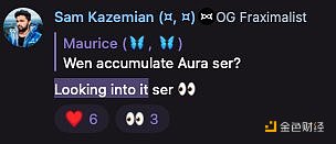 而 Frax Finance CEO Sam Kazemian 也在社区中暗示将会积累 AURA 的头寸。