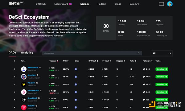 以上 DAO 为部分节选,如想了解更多请进入 ThePASS DeSci 生态圈子查看(https://www.thepass.to/ecology)。