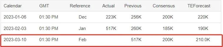 首先,美国2月非农数据将于下周五(3月10日)公布,目前市场预期为增加20万人,前值为增加51.7万人。美联储主席鲍威尔在2月初曾表示,若就业继续强劲,很可能必须有更多行动,加息可能超出市场定价水平。