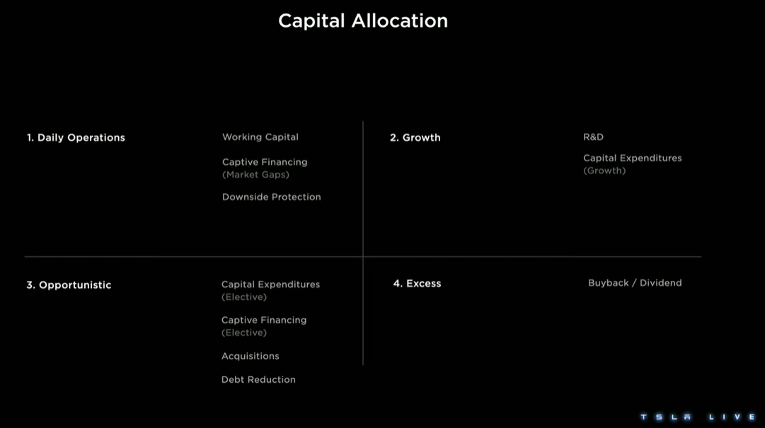 08:05 特斯拉CFO柯克霍恩称将进行“前所未有的规模”的投资;公司可能会花费至多1750亿美元来达到2000万辆的产量。此外,其展示图表显示,作为“过剩资本”的使用,可能会进行股票回购。