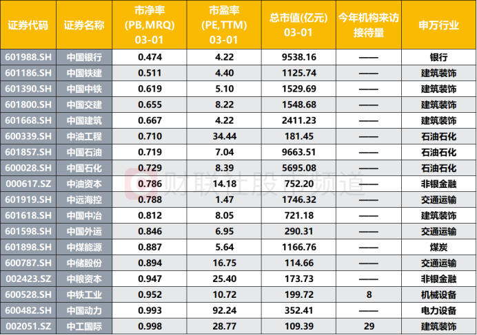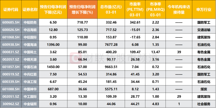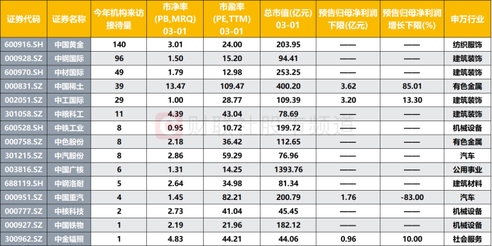 可关注标的方面,筛选中字头股票板块个股,从业绩方面统计(2022年年报预告),12只个股去年业绩(归母净利润下限)实现盈利且业绩增速在10%及以上,其中,中船防务净利同比增长超7倍,中远海能、中铝国际业绩增速也双双翻倍。从机构关注度上看,中国黄金、中钢国际、中材国际、中国稀土、中工国际、中粮科工年内机构来访接待量居前。此外,从估值角度统计,共有18只中字头股市净率低于1。