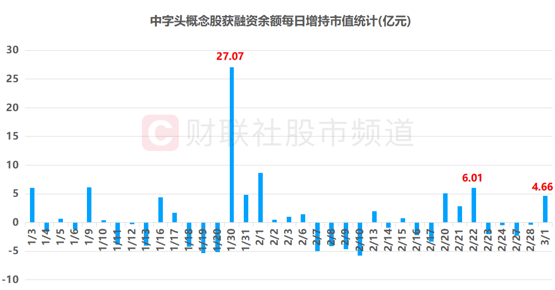 杠杆资金方面,与北向资金类似,融资余额昨日(3月1日)同样结束四日连续流出而大幅加仓,其单日净买入近4.66亿元,为近一周以来新高。个股方面,两市共有14股昨日获融资余额增持超1000万元,其中中国联通、中国移动、中国电信分别获净买入2.56亿元、2.39亿元、1.59亿元,此外,中国卫星、中金黄金、中国核电、中国国航、中航产融、中国中铁也被重点加仓。