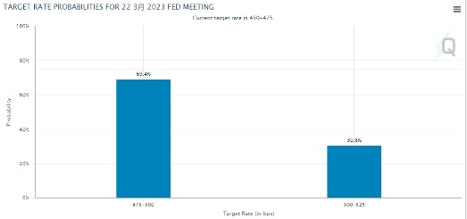 根据芝商所的美联储观察工具显示,虽然近期市场交易员预计美联储3月加息50个基点的概率已不断攀升,但仍只有约30%。