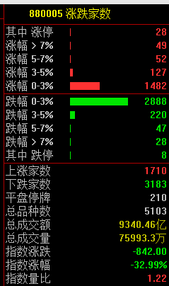 导读大家好,今天的市场,有些小跳水 沪指今日窄幅震荡,创业板指低开低走,午后跌幅扩大至1%。截止收盘沪指跌0.05%,深成指跌0.54%,创业板指跌1.04%。共1710只个股上涨,3183只个股下跌。北