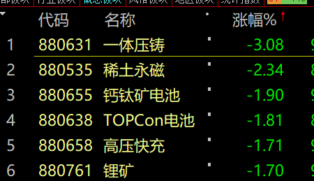 受特斯拉“宏图计划”影响,碳化硅、稀土永磁等相关板块走低,东尼电子、新朋股份跌停,天岳先进跌超10%,华宏科技、中科三环、金力永磁等跌超7%。