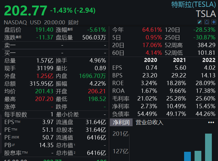 整体来看,这5步计划需要大量的储能支撑,据马斯克估计,想要打造一个“清洁的地球”共需要240TWh的储能,30TWh的可再生电力。不过,市场对这一宏伟蓝图似乎并未有多么看好,当地时间3月1日,特斯拉美股跌幅1.43%,盘后更是跌超5.6%。