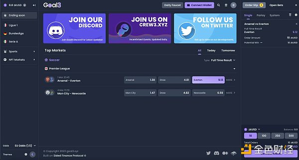 Goal3 是首个基于 zkSync 链(zkSync Era Goerli)构建的去中心化体育菠菜协议,通过区块链技术的安全性和透明度提供无缝的菠菜体验。它补全了 Web 2 菠菜的不透明和可访问限制,旨在创建一本自主、透明、任何人都可以访问的体育菠菜协议。