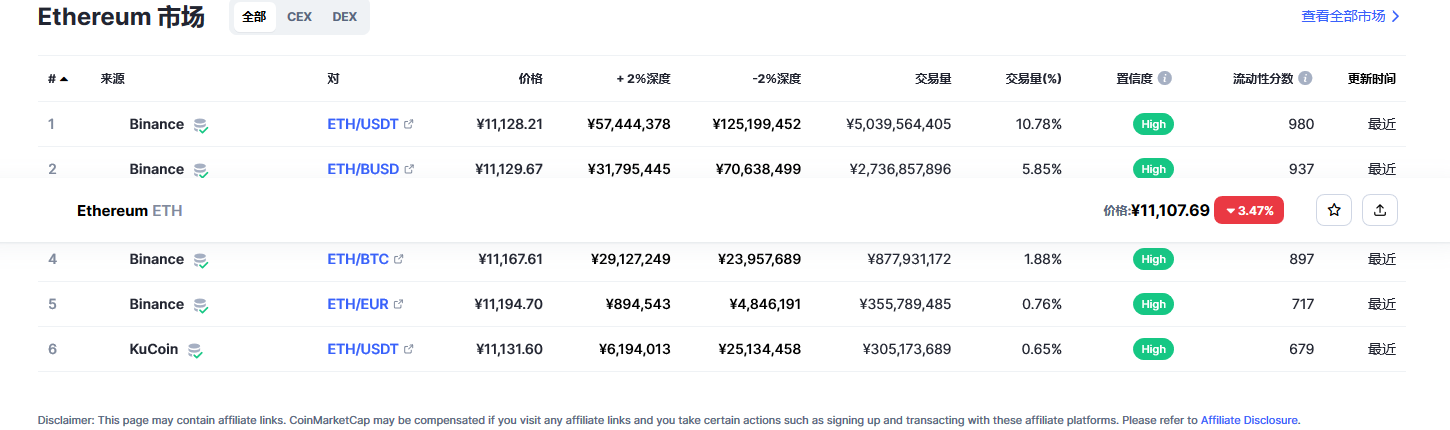 鉴于以太坊是仅次于比特币的第二大加密货币,因此可以购买以太坊,或在几乎所有主要加密货币交易所使用 ETH 交易对。一些最大的市场包括: