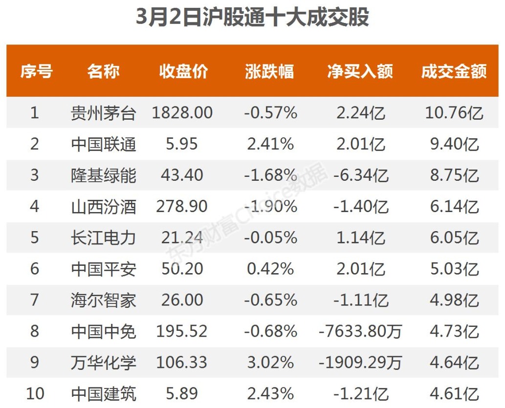 导读3月2日,大盘全天低开后震荡调整,沪指相对偏强,创业板指领跌。北向资金当日净流入7.65亿元,其中,沪股通当日成交净买额18.6亿元;深股通当日成交净买额-10.95亿元。昨日北向资金净流